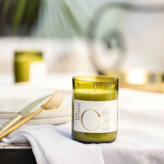 - La bougie upcyclée Chardonnay de chez Maison Tchin Tchin : Coulée dans une bouteille de vin surcyclée, ses arômes de vanille et de musc enveloppants en font la bougie parfumée artisanale idéale, qui plairait aussi bien aux hommes et aux femmes.