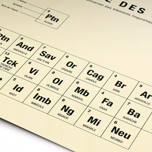 Affiche Majorette à Moustache Tableau Périodique des Jurons et Insultes - Kiplé